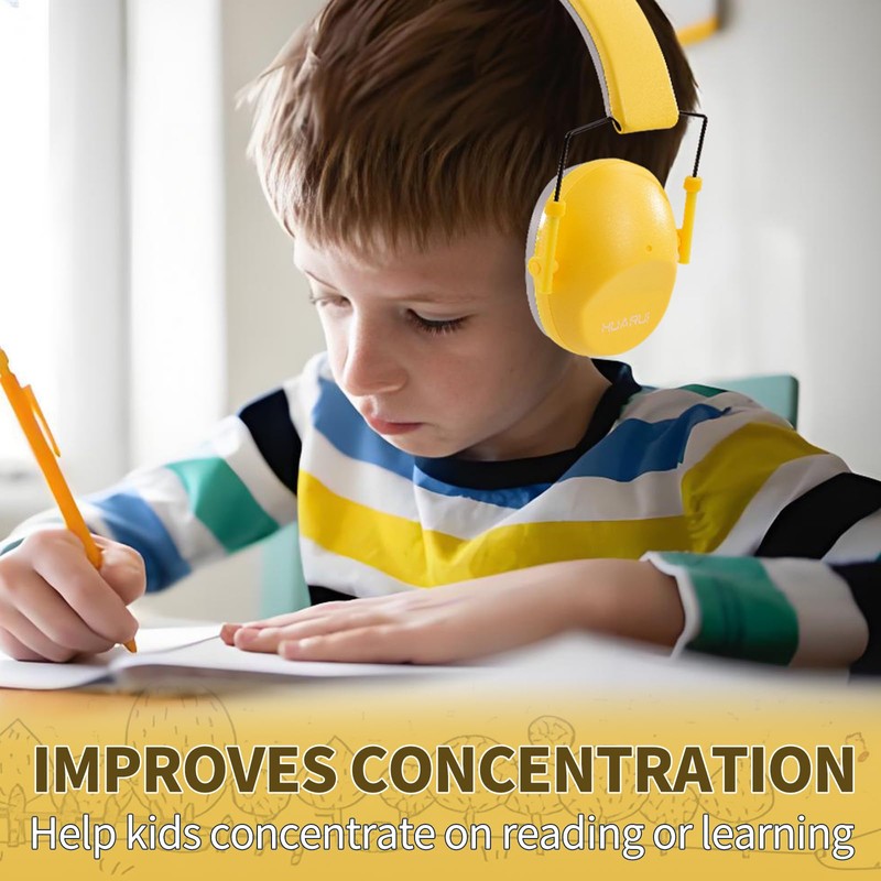 HUARUI Kids Noise Canceling Headphones SNR 28dB Safety Noise Reduction Ear Muffs for Kids Flying Travel, Concerts, Fireworks, Shooting-Yellow