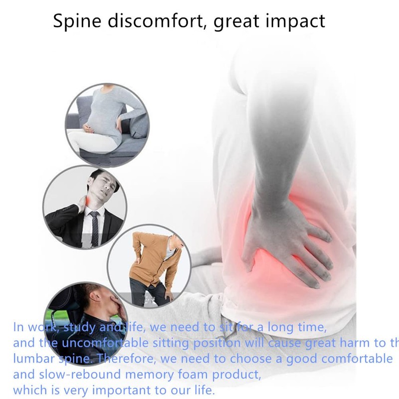 - MEMORY FOAM: The lumbar pillow adopts slow rebound memory foam, which can rebound slowly in 3-5 seconds to fully support the back and evenly distribute the pressure on the back. The lumbar pillow does not flatten out, giving you all-day support.