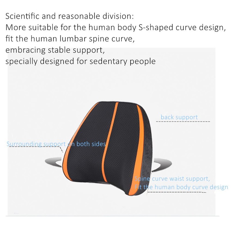 - COMFORTABLE AND BREATHABLE: The 3D air-cool mesh on the lumbar pillow cover is highly breathable for comfortable contact. Also, the quality memory foam inside absorbs shock during driving and perfectly fits the human spine curve and offers cushion & comfort to your waist no matter you sit or lay.