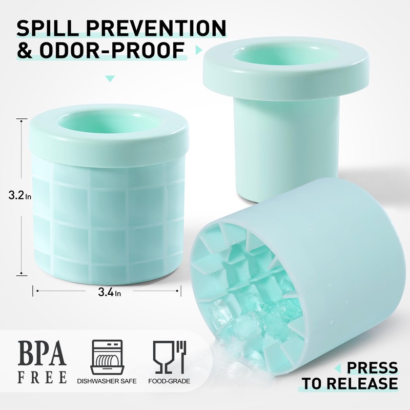 • Odorless and Secure: These crushed ice trays are made from food-grade BPA-free silicone. The tight-fitting lid prevents cross-flavor contamination and keeps ice fresh and odor-free. The tumbler ice molds are durable and dishwasher safe for easy cleaning