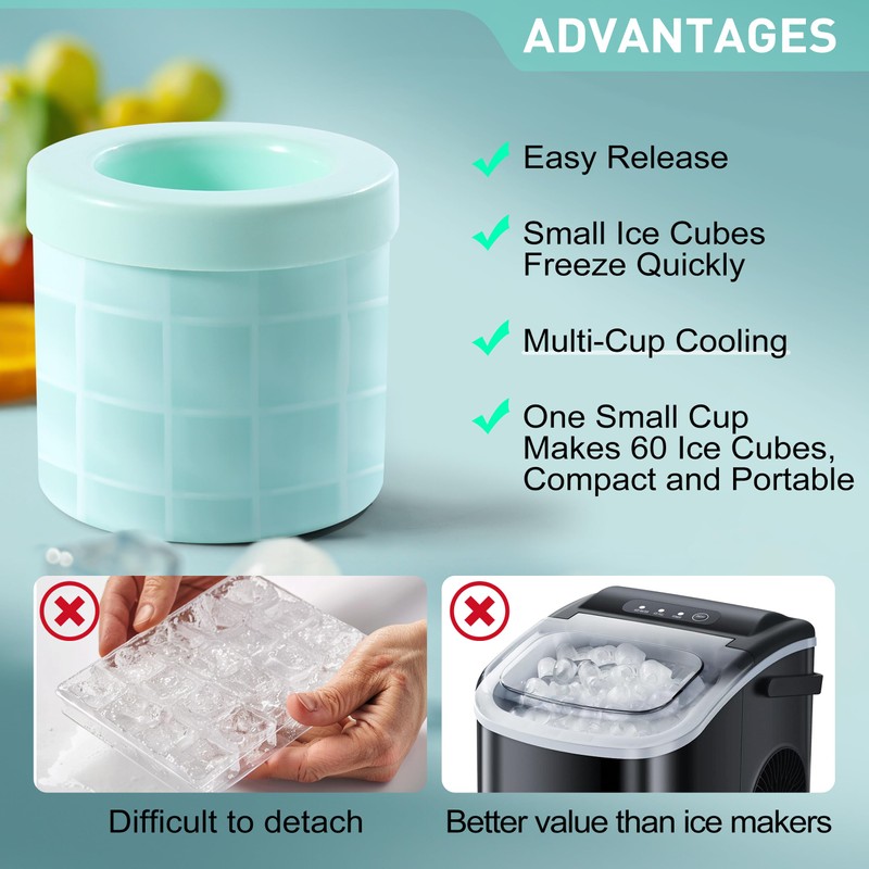 • Easy Release: The ice cube trays for freezer are easy to use. Fill with water, freeze, pour warm water into the central cup, and squeeze to release the tiny ice cubes. Ensures that pebble ice cubes are easily and cleanly removed from the tumbler ice molds