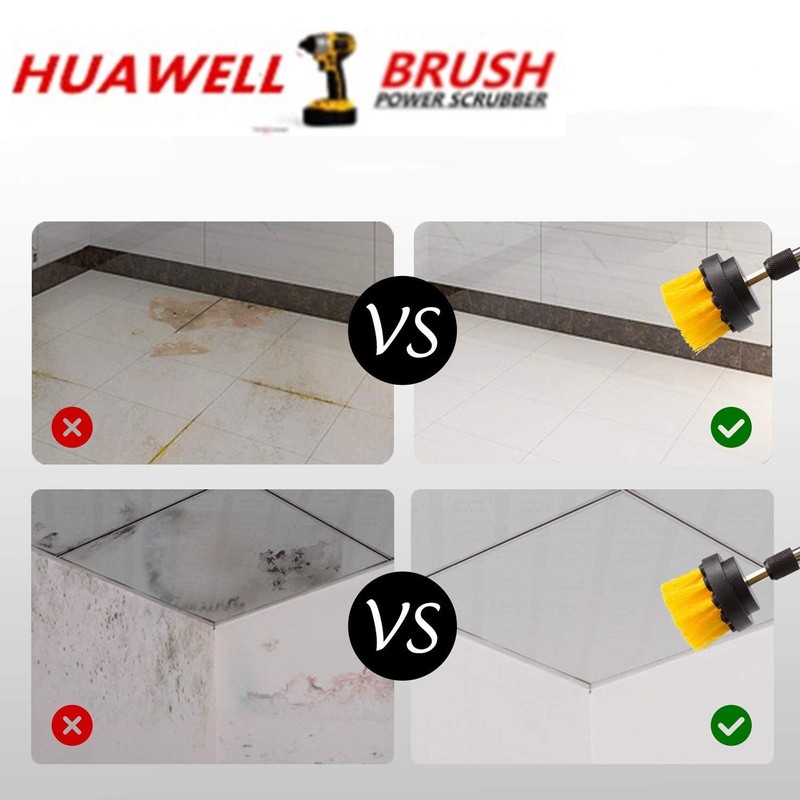HUAWELL Kit de limpieza de cepillo para polvo de taladro eléctrico de 4 piezas, cepillo para polvo de limpieza con extensor de 6 pulgadas, kit de cepillos multiusos para superficies de baño, tina, ducha, azulejos y lechada