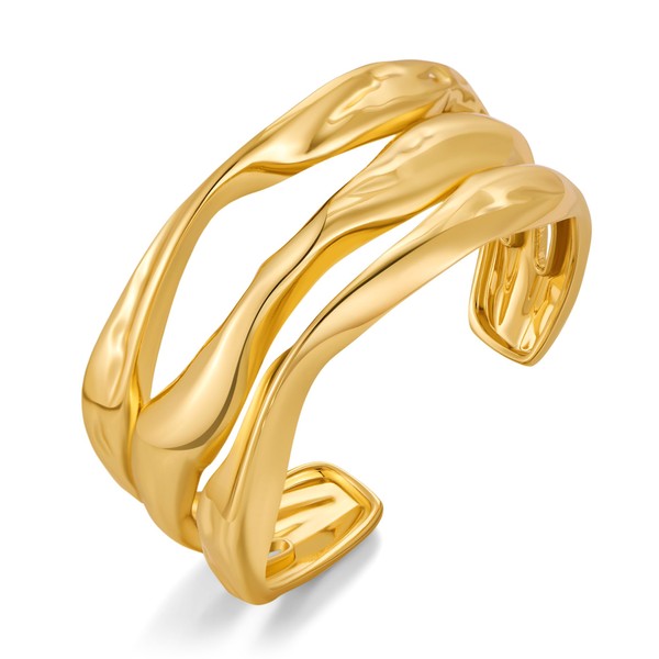 - Trendy Gold Cuff Bracelet: This gold chunky cuff bangle bracelet for women features a unique multi-layered open cuff design. The bold, wide statement bangle bracelet brings a touch of modern style, perfect for any occasion.