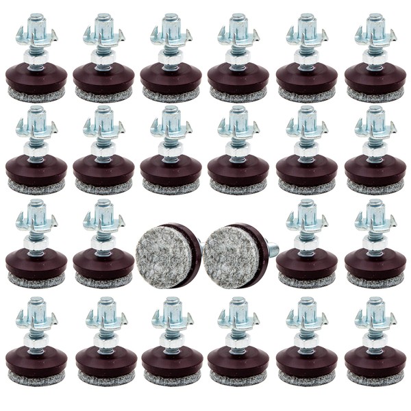 HUAYY Medium Duty Furniture Levelers Adjust Legs,Table and Chairs Leveling Feet|Height Adjustable Protection Integrated High-Density Felt Pads|Heavy Duty 1/4-20x1" Threaded Shank T-Nuts(Set of 24)