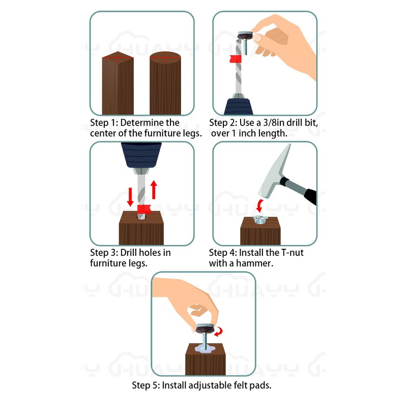 • This can be used as replacement feet or install in wood furniture leg by drilling a 5/16 inch hole and inserting t-nut.
