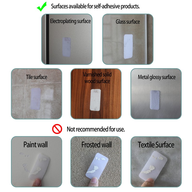 • ✅【Strong back adhesive】-----Super sticky industrial strength backside adhesive.It Can stick to smooth material surface,such as painted wall, plastic, metal, ceramic, glass and wood surface.