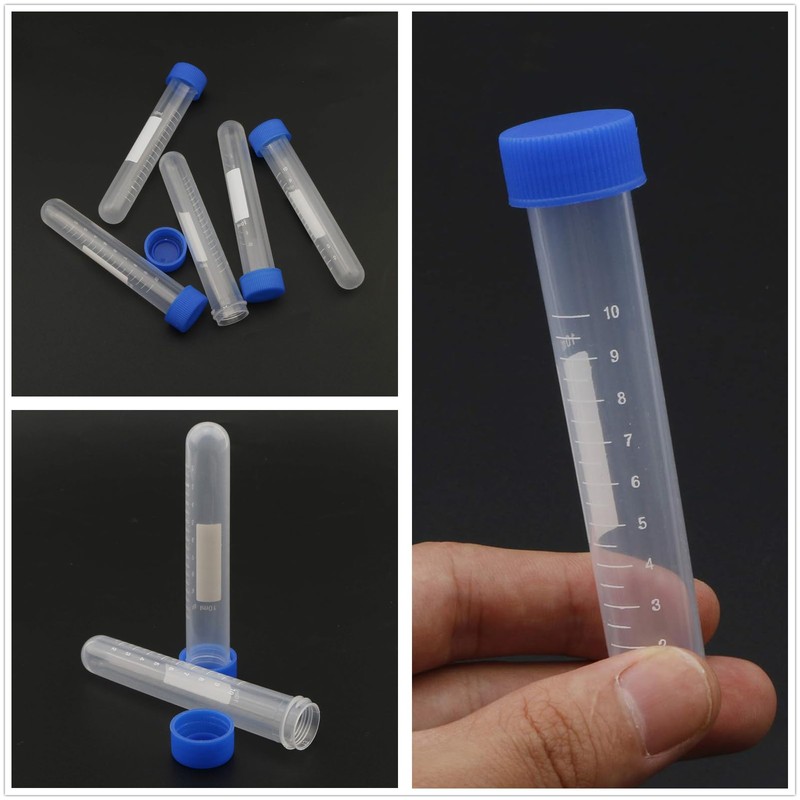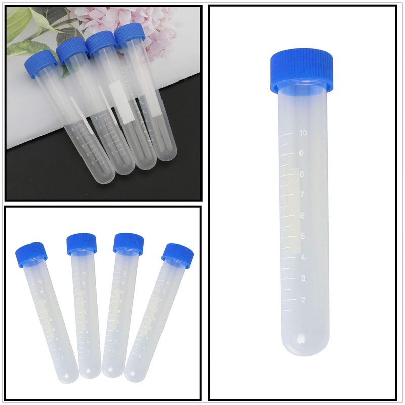 1.Plastic measuring tube with screw caps for centrifuges and laboratory test, 10ml content, easy to read liquid volume, good sealing cap, samples do not volatilize.