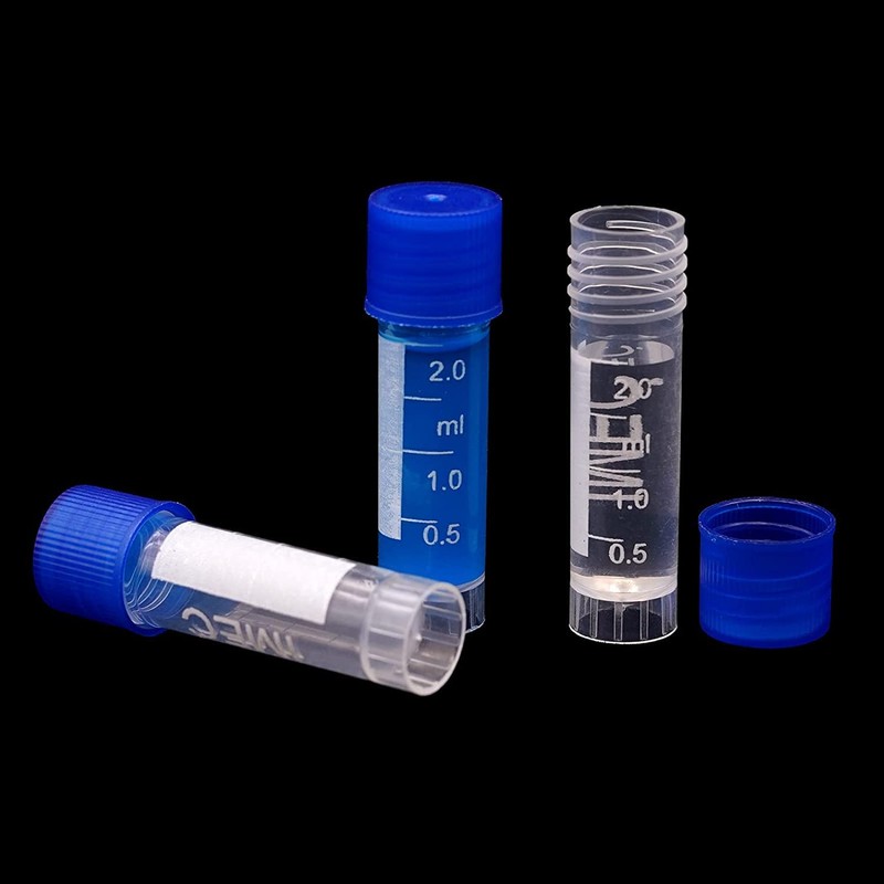 Plastic cryo tubes: made of PP, with good temperature resistance and tightness. 2 ml capacity, clear scale, easy to use.