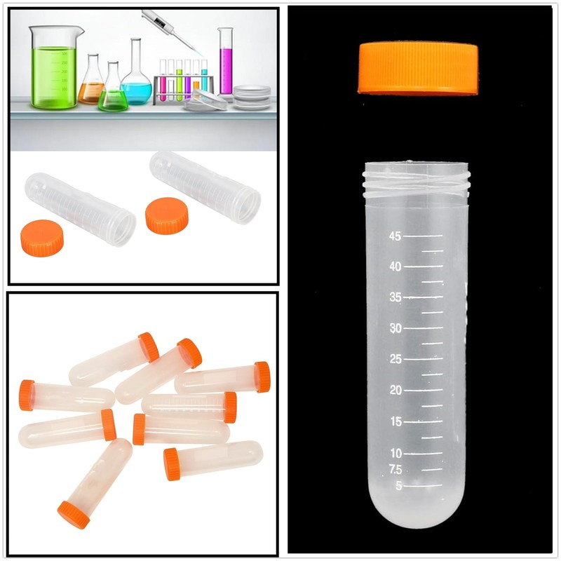 1.Plastic measuring tube with screw caps for centrifuges and laboratory test, 50ml content, easy to read liquid volume, good sealing cap, samples do not volatilize.