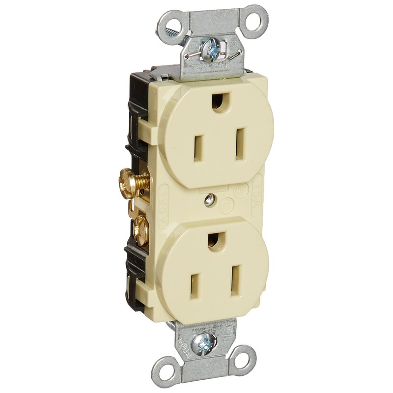 Hubbell CR15I Duplex Receptacle, Common Ground, 15 amp, 125V, 5-15R, Ivory (Pack of 10)
