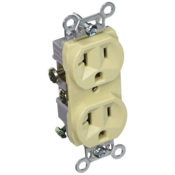 Hubbell CR20-I Commercial Duplex Receptacle, Ivory