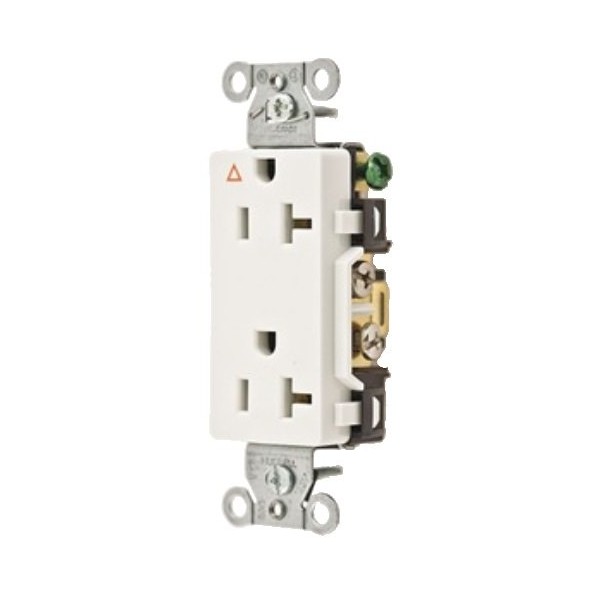 Hubbell Wiring Systems IG20DRWHI SpikeShield Style Line Commercial Specification Grade Straight Blade Isolated Ground Decorator Receptacle, 125V, 20A, 1 HP, 2-Pole, 3-Wire, White