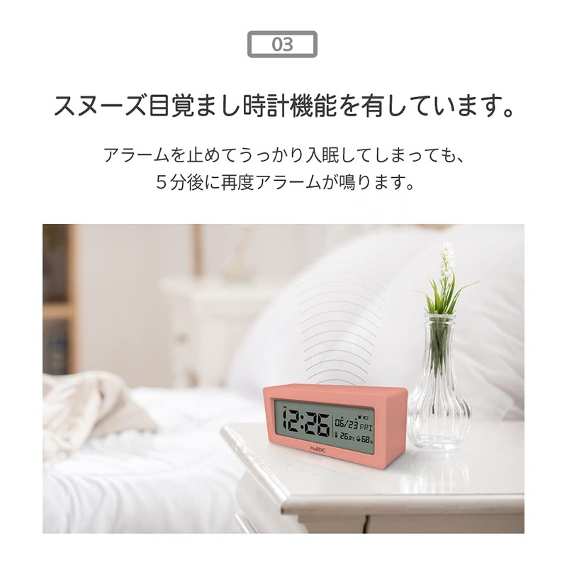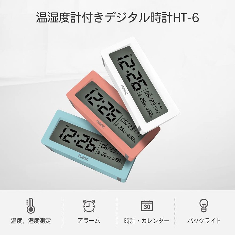 HuBDIC (HT-6) Temperature Humidity Date Day Alarm Snooze Backlight Included, Thermometer/Hygrometer, Alarm Clock, Easy to Read Digital Clock, Temperature and Humidity, Time, Day of the Week, Simple,