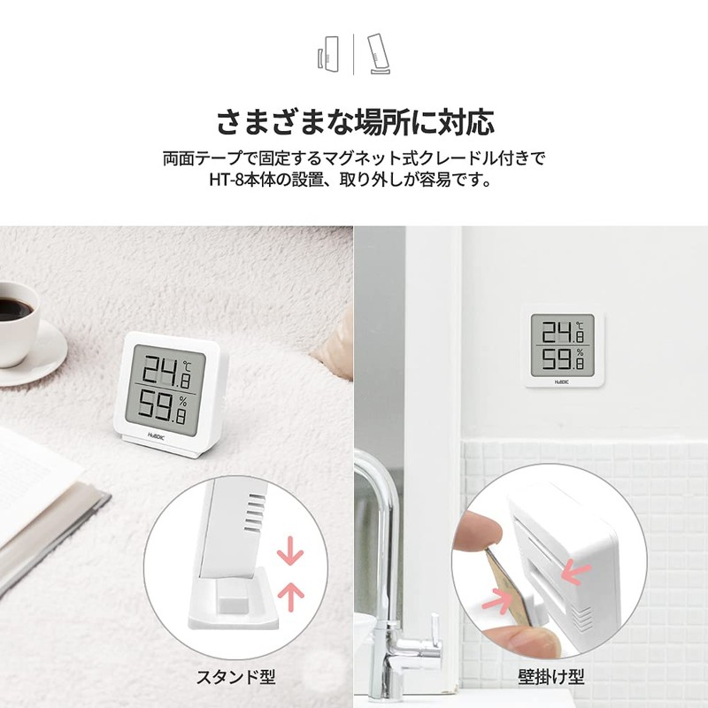 HuBDIC HT-8 Simple Thermo-Hygrometer, Digital Thermometer, Hygrometer, High Precision, Home Thermometer, Hygrometer, Room Thermometer, Magnet, Small, Tabletop, Pet, Reptile, Wall Mount, Can be Used as