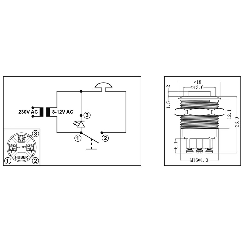Voltage: 8 – 18 V AC/DC