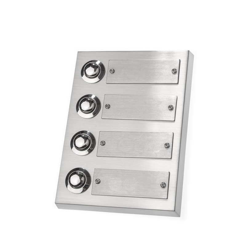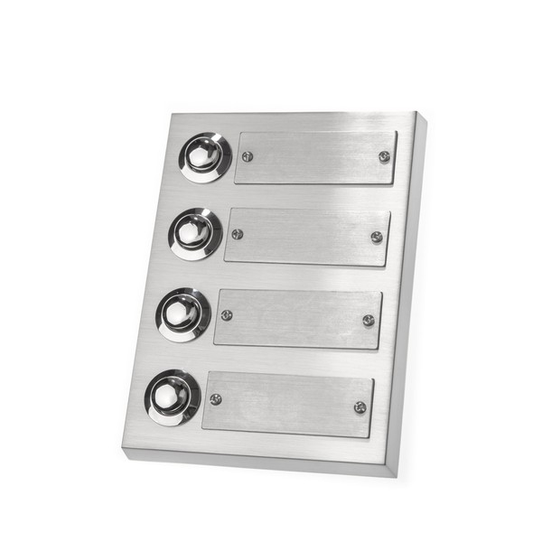 - Box contents: HUBER surface-mounted 4-way bell button with name plate made of stainless steel including screws and dowels for easy installation and quick installation