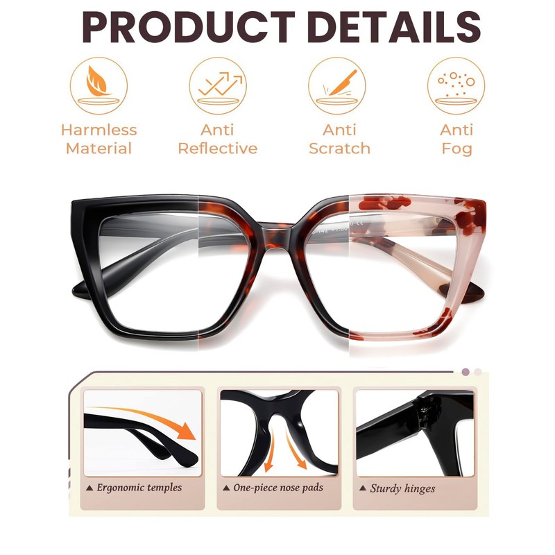 - Effective Anti-Blue Light Lenses: These glasses effectively block harmful blue light emitted by mobile phones and other devices. They help relieve visual fatigue and discomfort when reading, using a computer or cell phone, and better protect your eyes.
