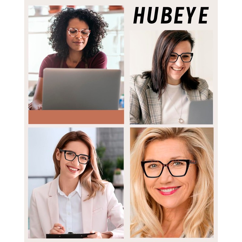 Hubeye Reading Glasses for Women Blue Light Blocking Computer Readers Oprah Square Anti Glare/Eyestrain Spring Hinge +0.0