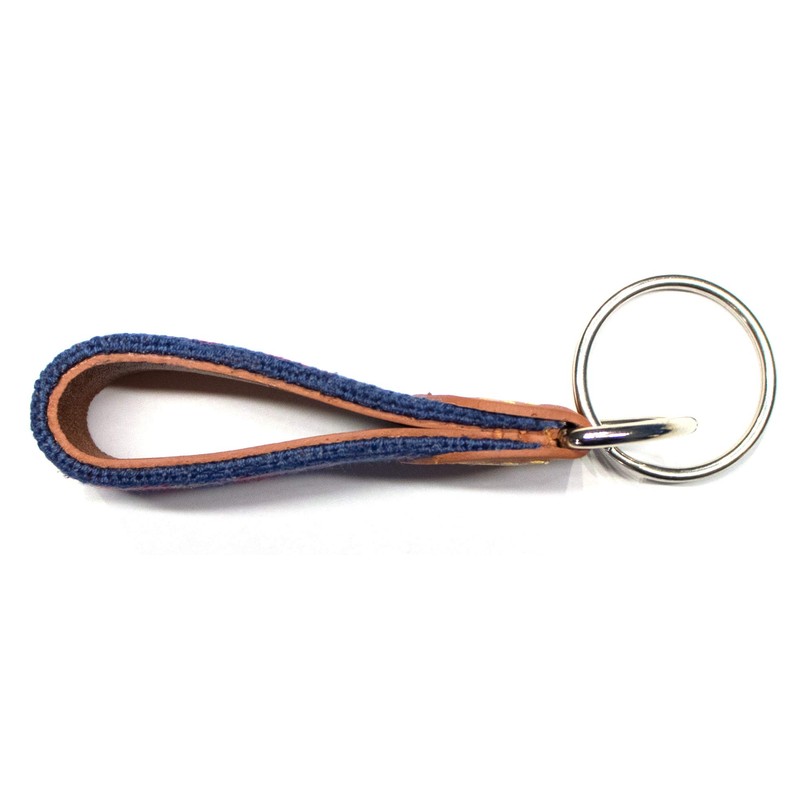 - Hand-stitched needlepoint keychain