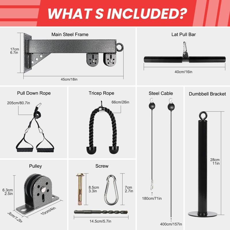 HUCOVIN LAT Pulldown Attachments Pulley System Gym Tricep Rope Pull Down Training Cable Machine LAT Pulldown Machine for Home Gym