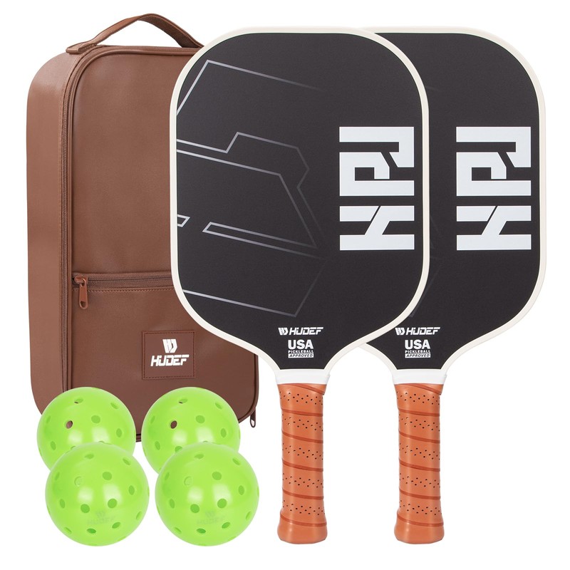 HUDEF Pickleball Paddles, USAPA Approved Pickle Ball Paddles Set of 2, Composite Carbon Fiber and Polypropylene Honeycomb Core Pickleball Racket with Comfort Grip, 4 Outdoor Balls and Carry Bag Black