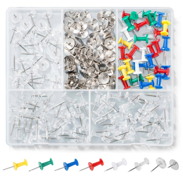 Hudinsun 180 Pcs Push Pins, 4 Styles Thumb Tacks for Bulletin Board, Cork Board and Wall | Hudinsun