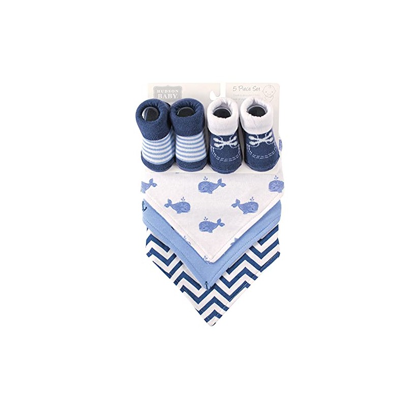 Hudson Baby Unisex Baby Cotton Bib and Sock Set, Whale, One Size