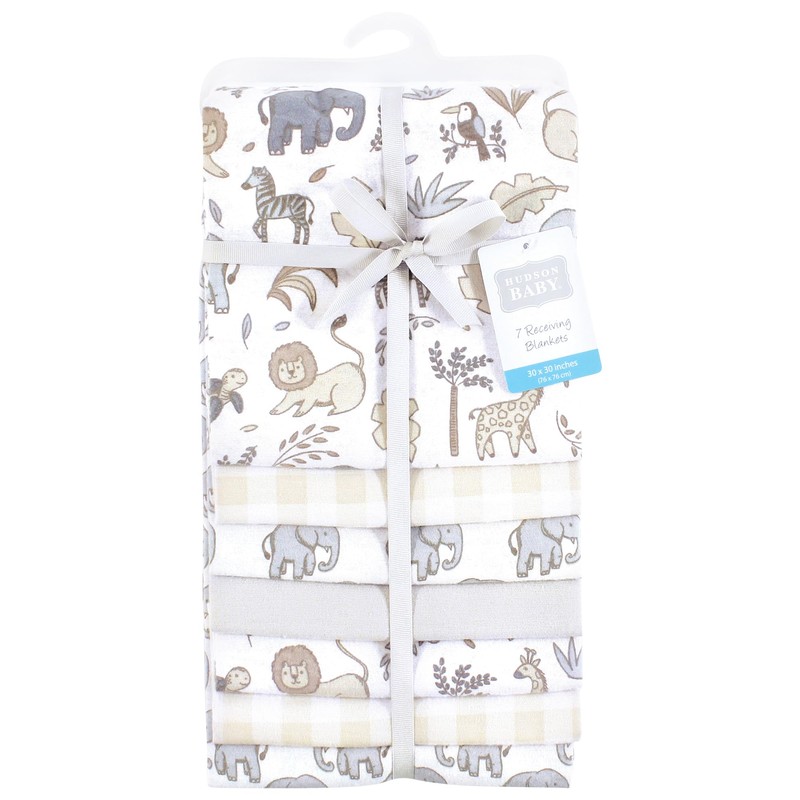 Hudson Baby Unisex Baby Cotton Flannel Receiving Blankets Bundle, Neutral Safari, One Size