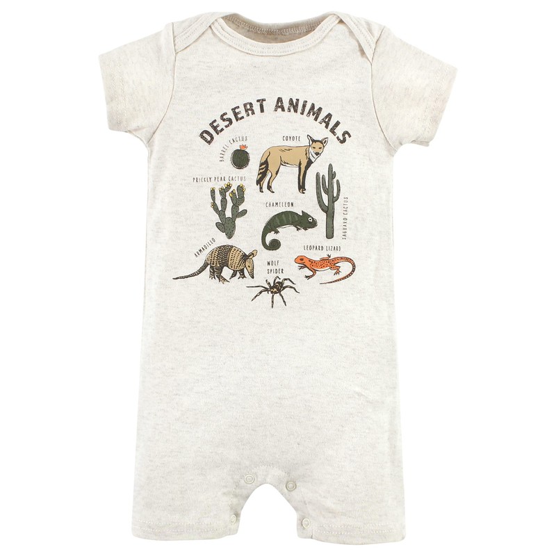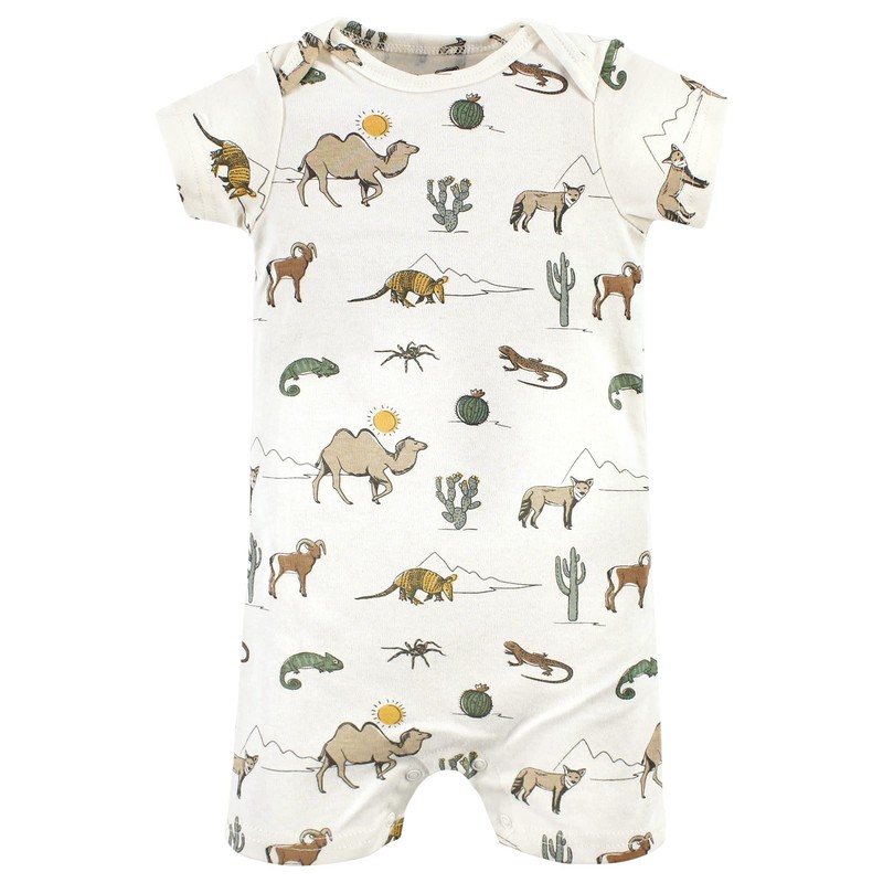 Hudson Baby Unisex Baby Cotton Rompers, Desert Animals, 6-9 Months