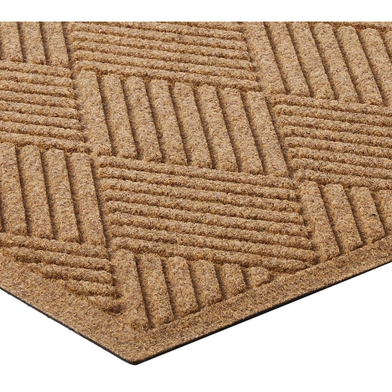 Hudson Exchange Fashion Diamond entrance indoor floor mat. No other mat in the industry traps water and dirt so effectively. mats are constructed of rubber reinforced face nubs and the "diamond" design provides crush proof scraping action. Raised, "water dam" borders trap dirt and water keeping floors cleaner and safer. These mats are perfect indoors or out, especially outside your front door. The border for Waterhog Fashion Diamond features the same 100 percent polypropylene fiber system as the mat surface. Certified slip- resistant by the National Floor Safety Institute. Contains 20 percent recycled rubber content. Premium 24 oz/sq anti-static polypropylene fiber system dries quickly and won't fade or rot. When wet, the rubber reinforce surface allows water to be wicked to the bottom of the mat away from foot traffic while providing a slip resistant surface. Unique ridged construction effectively stores dirt and moisture beneath shoe level. Should not be used in areas exposed to animal fats (kitchens) or petroleum products. Not adversely affected by salt or ice melt. Recommended uses computer rooms, around electronic equipment, malls, banks, hotels, offices, restaurants, healthcare, supermarkets and more. Measured Size - 35" L x 35" W, 3/8" Thick.