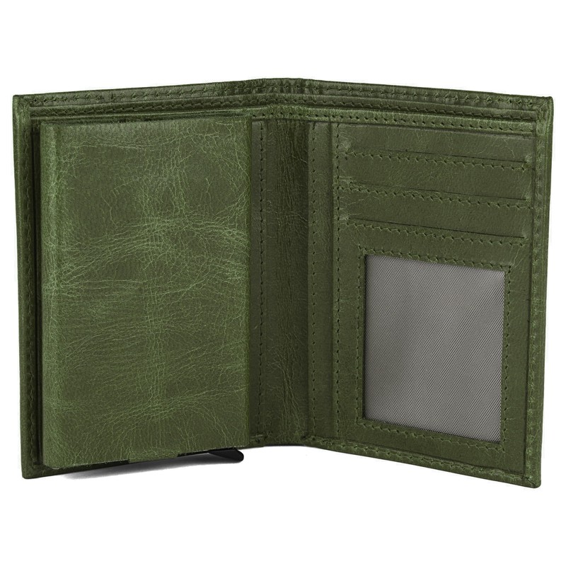 Hudson & James Slim Leather Holder Wallet Mens Minimalist Wallet Pop Up Design, RFID Blocking Metal Bank Card Case with Coins Pocket, ID Window, Hold up to 10 Cards (Green)