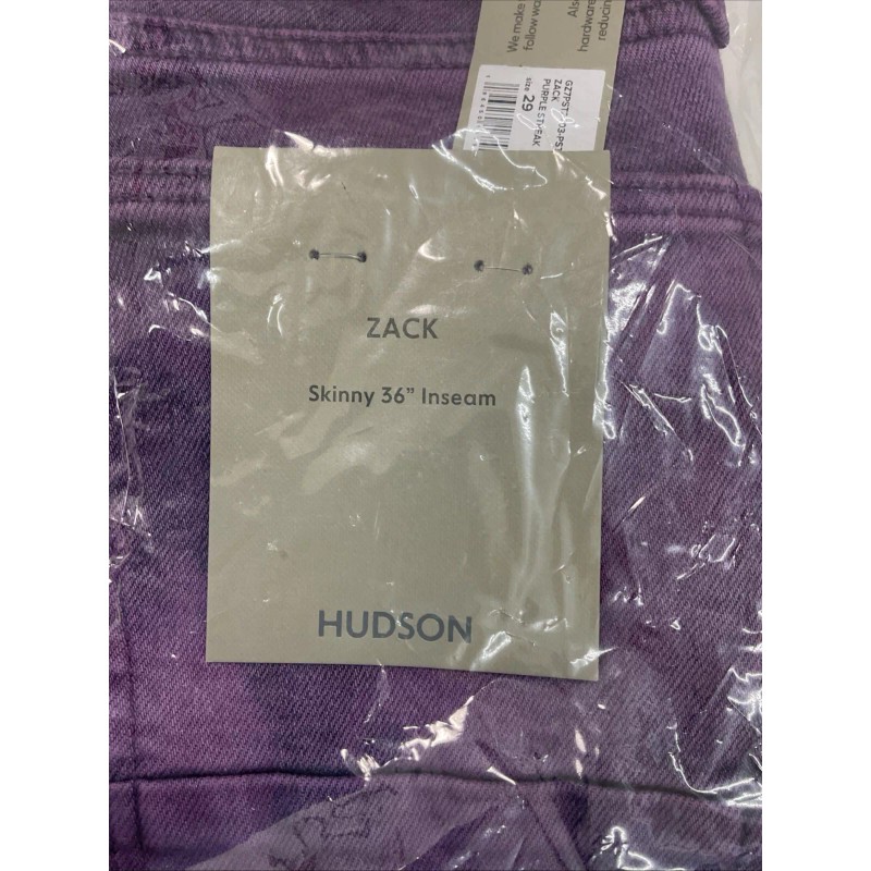 The Hudson Zack Men's Skinny Jeans in size 29x36 offer a bold style in a unique purple streak color. These jeans are designed with a skinny fit for a modern and sleek look. They are brand new with tags, ensuring quality and authenticity. Perfect for fashion-forward men looking to make a statement with their clothing, these Hudson jeans are a stylish choice for any casual or semi-dressy occasion.