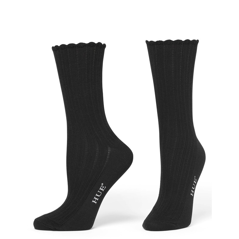 HUE Women's Scalloped Pointelle Sock, Asst. #2: Tiger’s Eye/White/Black, One Size