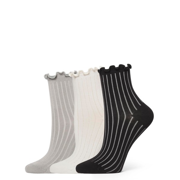 HUE Women's Sheer Rib Anklet 3 Pair Pack, Assorted: Drizzle/Ivory/Black, One Size