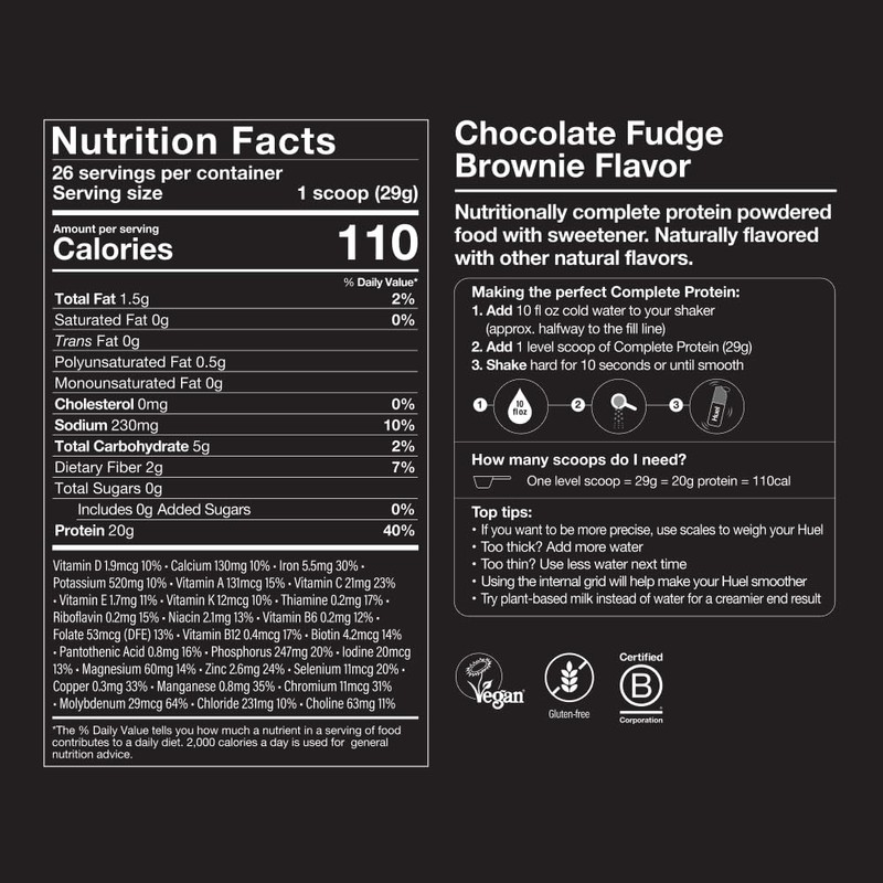 Huel Vegan Protein Powder | Chocolate Fudge Brownie | Complete Nutrition | 20g Protein Powder | 100% Plant-Based | 27 Vitamins & Minerals, Gluten Free, Non-GMO, Lactose Free | 26 Servings