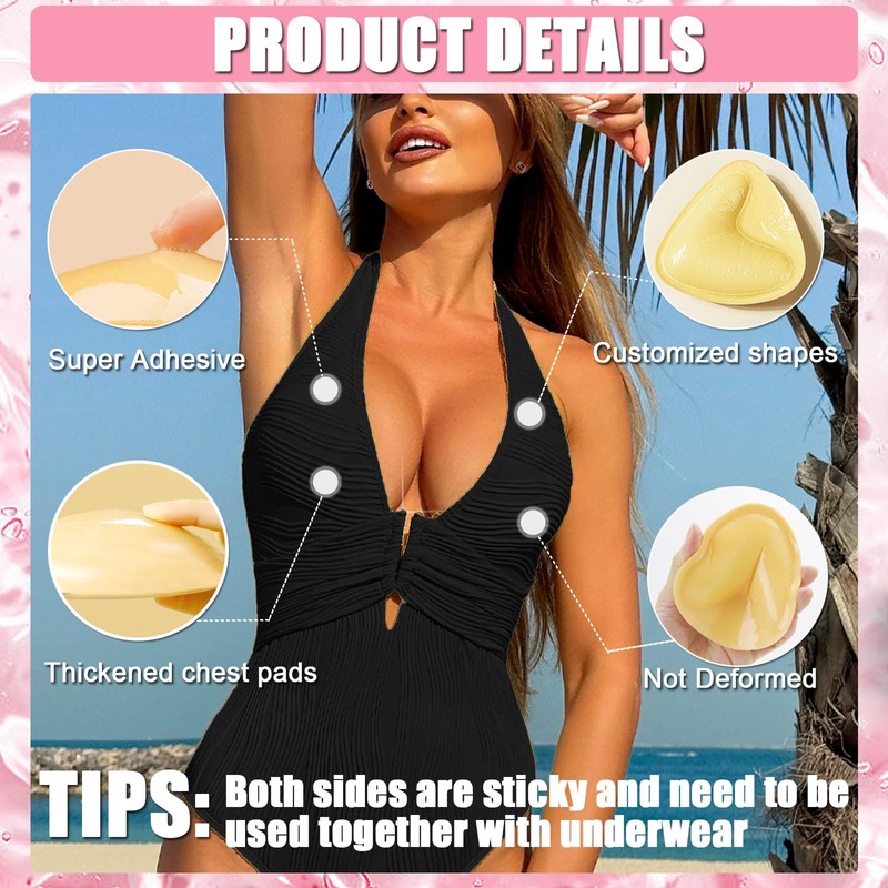 • Ultra Sticky: Double sided sticky boob inserts are hand brushed adhesive,waterproof and long-lasting, customized material sticky bra pads is not deformed and rebound fast, washable, reusable