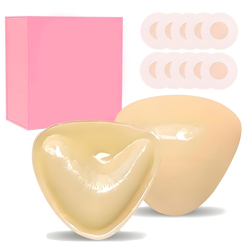 • Fit Size: Double sided stick on bra are available in B cup and C cup,Package includes 1 pair of bra inserts with 5 pairs of breast stickers, and a beautiful box for easy storage, perfect for your wife and friends
