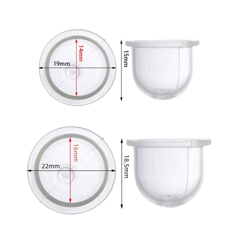 • Package includes 4 pcs x 18.5mm and 4 pcs x 22mm clear primer bulbs.