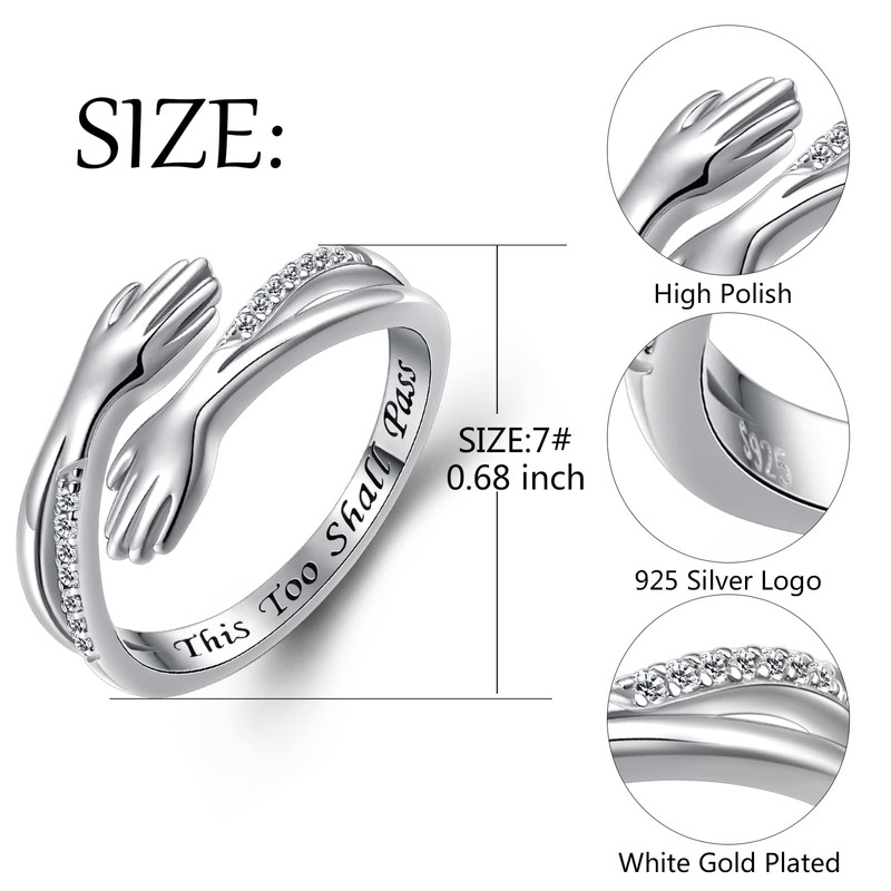 • 💕【Love Hug Rings】 - The whole wrap ring is surrounded by double hugging hands which refers “Come to My Hug” ring. Engraved “This Too Shall Pass” on the ring arms, reminds us that a bad or unpleasant situation will eventually end.