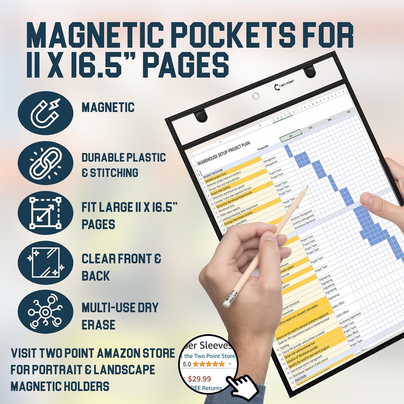 - ☑️ DURABLE PLASTIC AND STITCHING - Rugged double stitching and heavy duty plastic are designed for tough industrial use. These clear magnetic dry erase pocket sleeves keep documents secure, whether in a warehouse or on a shop floor.