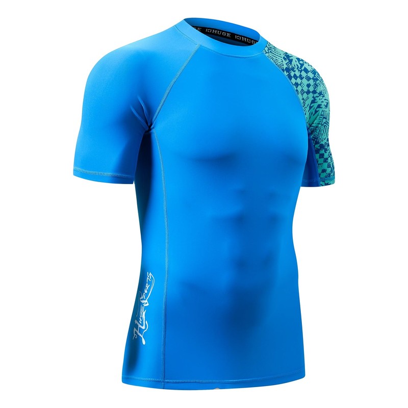 - 【Quick drying】HUGE SPORTS swimming rash guard for men dries quickly. Breathable fabric balances temperature while eliminating excessive moisture and heat.