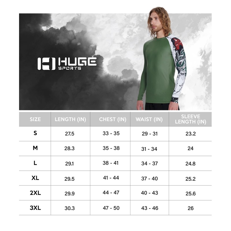 HUGE SPORTS Swimming Shirts for Men UPF 50+ Quick-Drying Compression Long Sleeve Men's Rash Guard, Guanyu