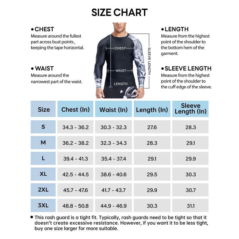- Rash guard men of Wild Series merges the animal totem with the aesthetics of geometry.Notice: This rash guard is a compression fit. Order ONE SIZE LARGER than you nomally do for a comfortable fit.