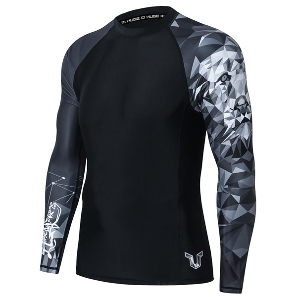 HUGE SPORTS Wildling Series UV Protection Quick Dry Compression Rash Guard for Men Lion L