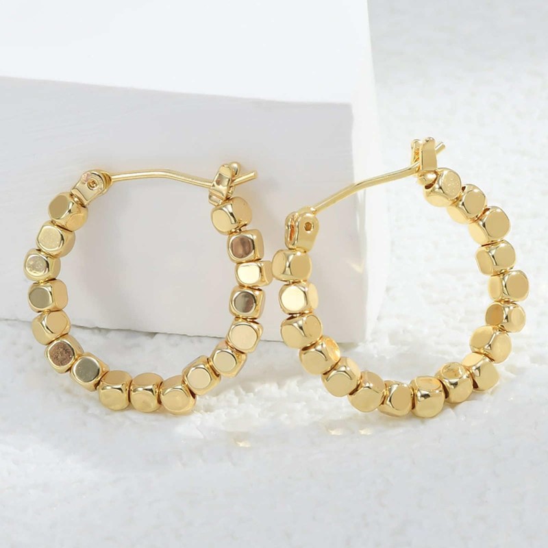 - Unique Cube Design: These hoop earrings feature metallic cube beads for a bold, modern twist on a classic accessory