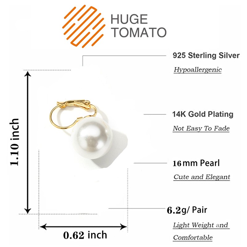 Huge Tomato 16mm Big Pearl Dangle Earrings White Round Pearl Earrings for Women