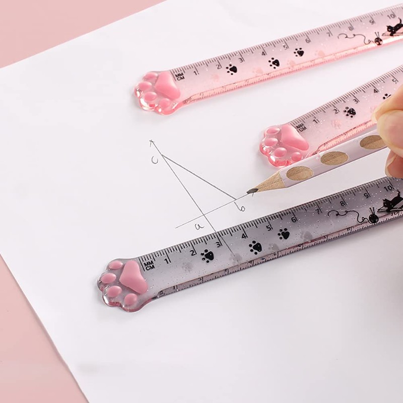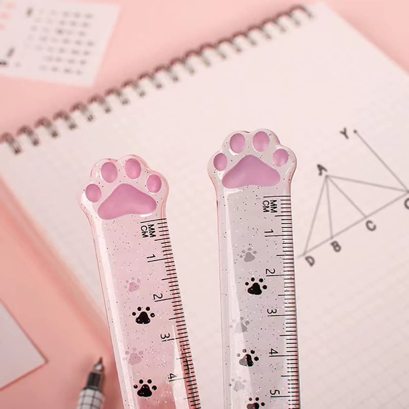HugeDE 2 Pcs 15cm Pink Transparent Plastic Cat Paw Straight Ruler