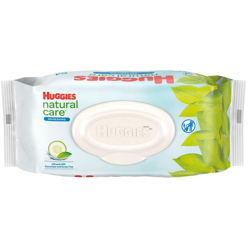 Huggies Natural Care Refreshing Baby Wipes are made with plant-based ingredients, 99% purified water and infused with cucumber and green tea for a refreshing clean. Natural Care Refreshing Wipes are hypoallergenic, dermatologically tested and pH-balanced to maintain healthy skin. They also feature Triple-Clean Layers to help get baby clean with fewer wipes. Natural Care Refreshing scent baby wipes are safe for sensitive skin with no harsh ingredients. They're alcohol-free, paraben-free and do not contain phenoxyethanol or MIT. In addition, the unique base sheet absorbs, locks-in and retains the mess to help ensure your baby's skin is clean and healthy. With the #1 branded wipe* you can feel confident you're giving baby a safe, gentle clean every time. Huggies Natural Care Refreshing Wipes are available in a variety of pack options, perfect for use at home or on-the-go: flip-top packs, refill packs, reusable nursery tub and the stylish Clutch 'N' Clean refillable travel pouch.