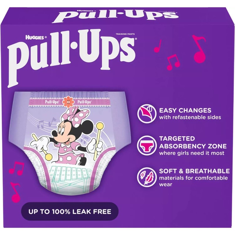- Pull-Ups Training Pants provide up to 100% leak-free protection with targeted absorbency where girls need it most