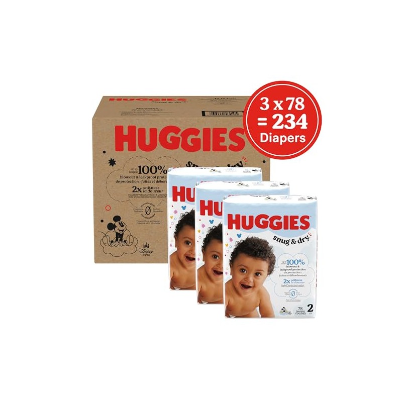 Huggies Size 2 Diapers, Snug & Dry Baby Diapers, Size 2 (12-18 lbs), 234 Count (3 Packs of 78), Packaging May Vary